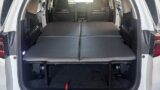 2列目3列目シートの部分に約2mのフルフラットベッドが出来る訳ですが、これは普段のご主人の運転席と奥様の助手席シートポジションを基に製作しました