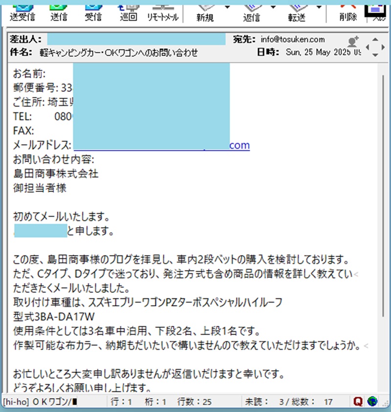 ご丁寧な問合せだったのに返信が漏れていて1ヶ月後に再度ご連絡を頂き、慌てて返信