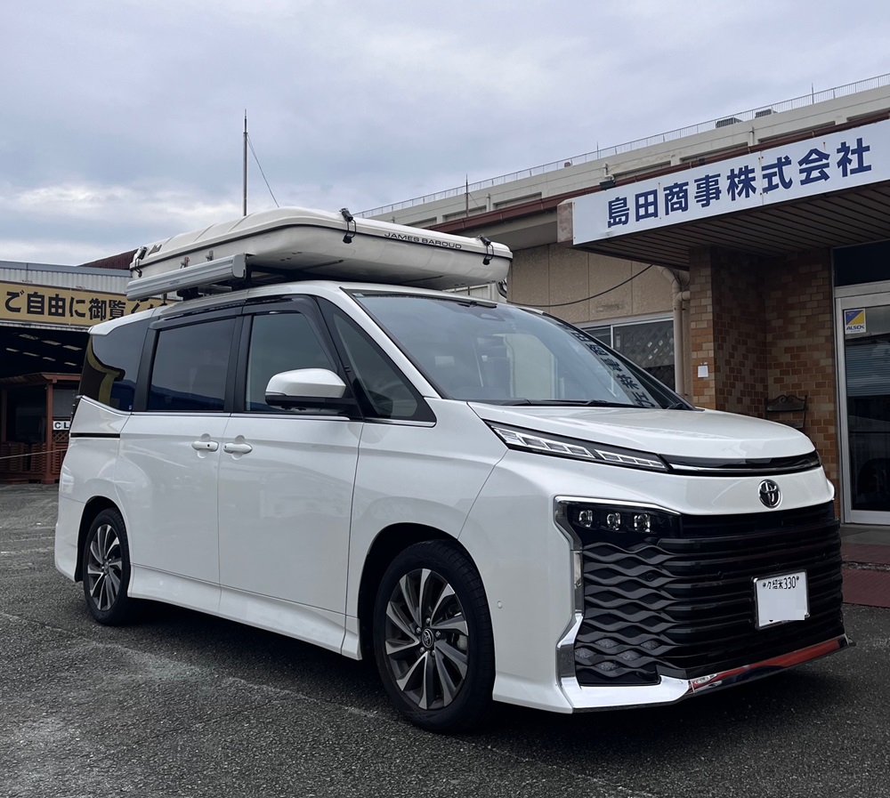 身内から借りたVOXYに昨日ルーフテントを載せて、また明日は雨予報にて、急遽サイドオーニングも付けました