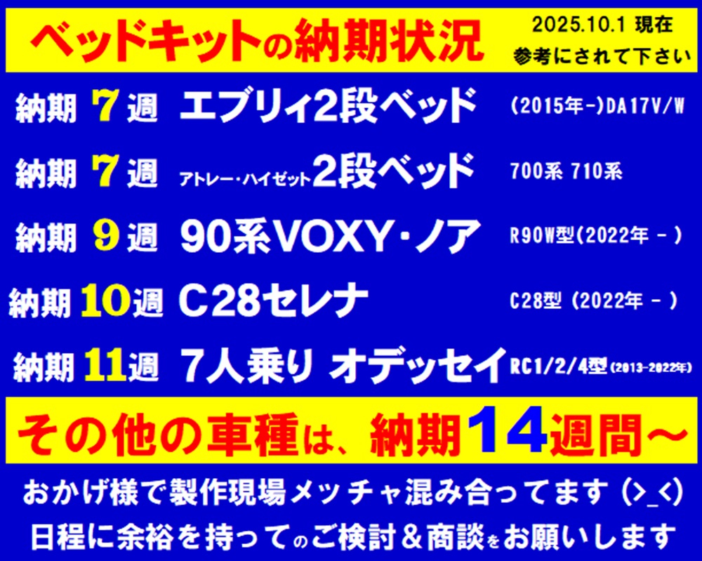 毎月コンスタントに出ているエブリィ用2段ベッドキット、最近は書き込みしてなかったので頂いた画像がだいぶ溜まっており、紹介のペースをアップしていかねば、です