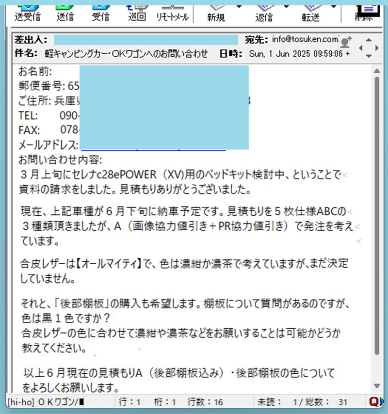 3月に神戸M様から問合せを頂き、参考見積りを添付した説明メールを返信しましたが、その時は反応なし
