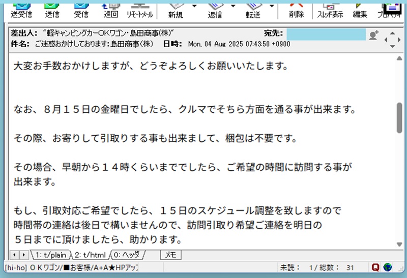 この時、ちょうど北海道のお客様達へ納品するべく出発の準備していた時で、神戸ならば帰りのフェリー大阪南港に行く時に寄って引取りが出来る!