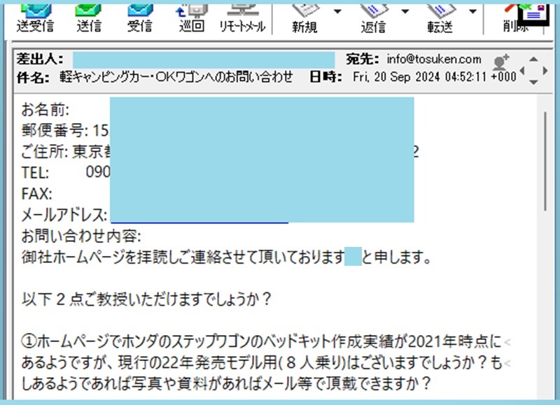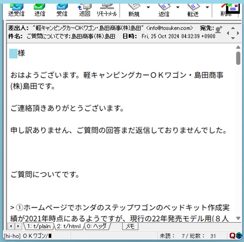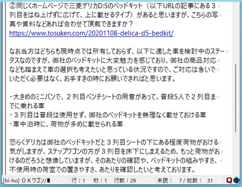 H様から頂いた長文の問合せにパパッと目を通し、要点2つ分かりました