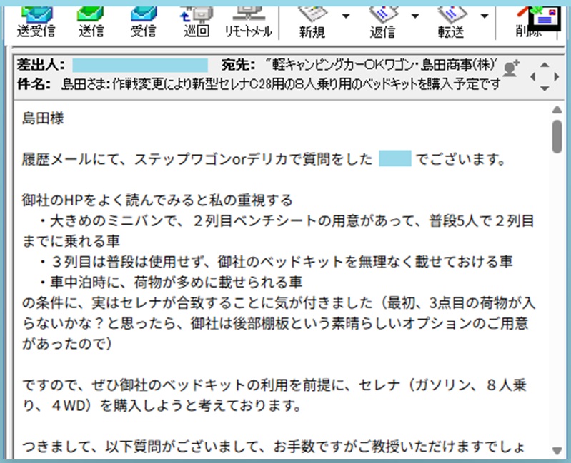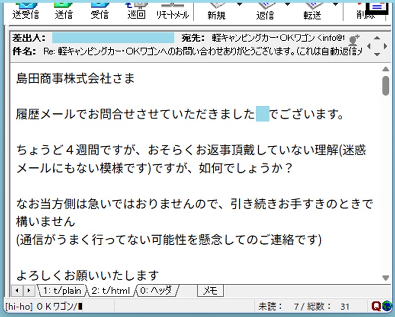 クルマは今から購入で、しかも決まってないので、私からの返事も急いでない