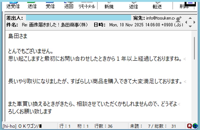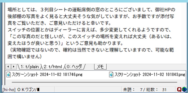 今回、メールやりとり中心の紹介となるので、合間にH様から頂いた画像を無作為に入れ書き込みします(^_^;