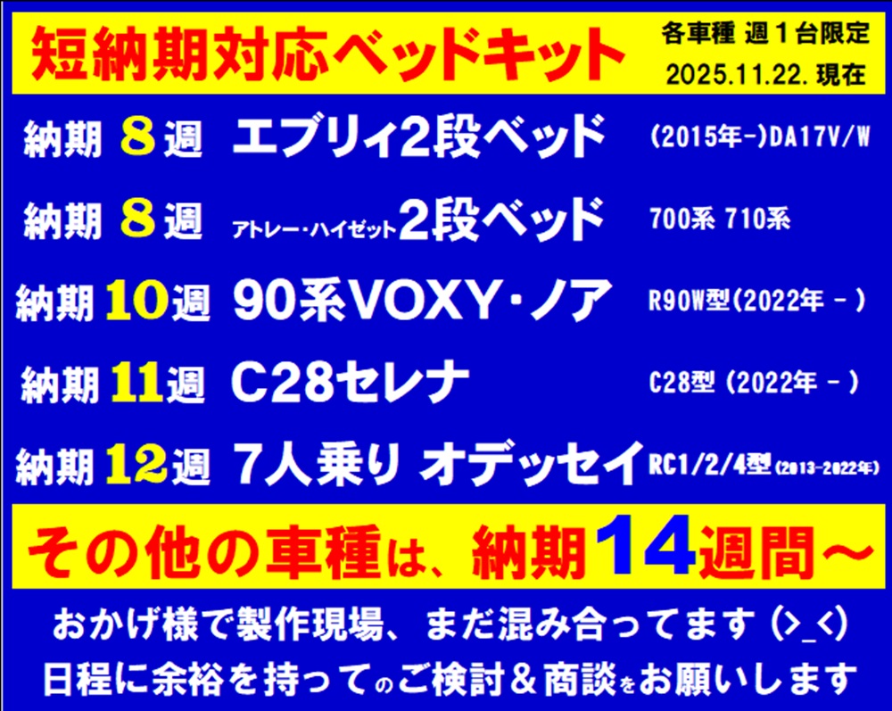 『C28セレナ7人乗り用のベッドキットを検討中』