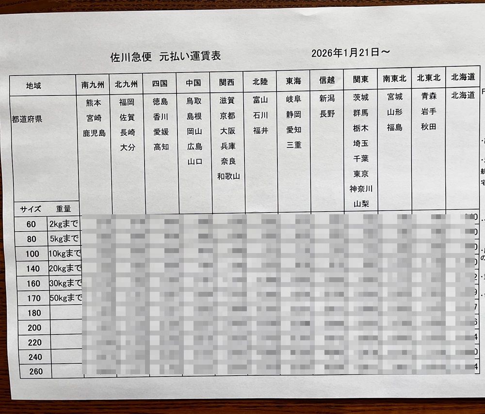 昨年、送料がアップされたのに伴い値上げしましたが、佐川急便が今年も来週から値上げなるので、原価スライドでの値上げとなります