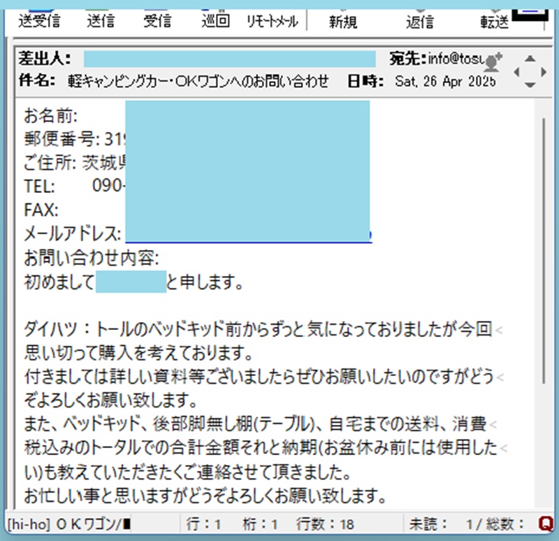 この時チョッとバタバタで遅れましたが、参考見積りを添付した説明メールを返信すると、直ぐにご注文を頂きましたが・・・