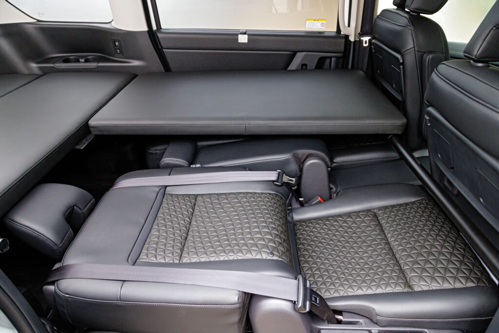 これだと、ベッドにするには運転席・助手席を前にスライドさせねばならず、運転は無理