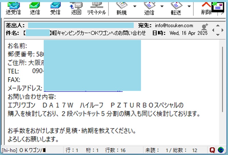 お客様の地域へお届けした場合の見積り、画像協力頂ける場合の値引き見積り、レザーの選び方、商談から注文、発送お届けまでの流れなど説明したメール返送します