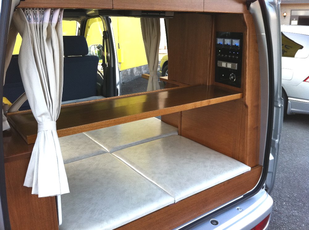 もともとは、軽キャンピングカーOKワゴンを作り始めた18年前に、左右の壁の間に奥行30cmの板を渡したのが原点です