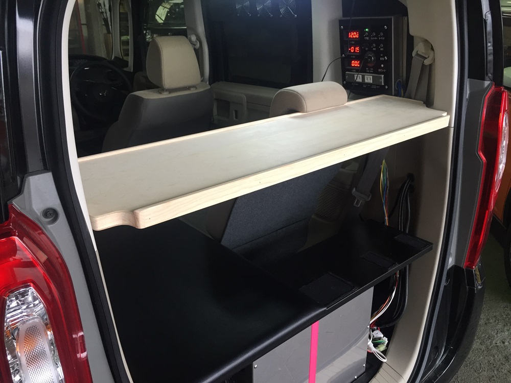 だからN・BOX用のベッドキットを作った際、オプションで後部棚板を作りました