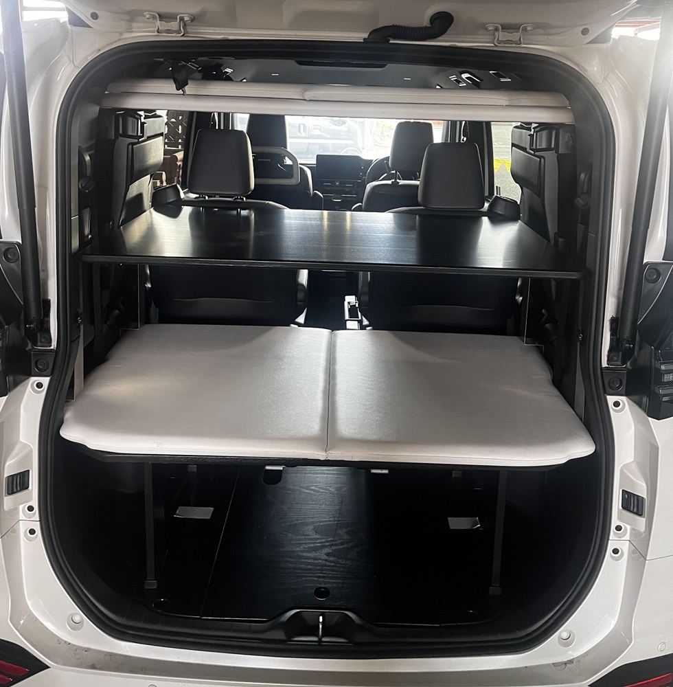 弊社の決して安くないベッドキットを購入されたお客様が、より快適な車中泊が出来る様にと考えたオプションの一つに、後部棚板というのがあります