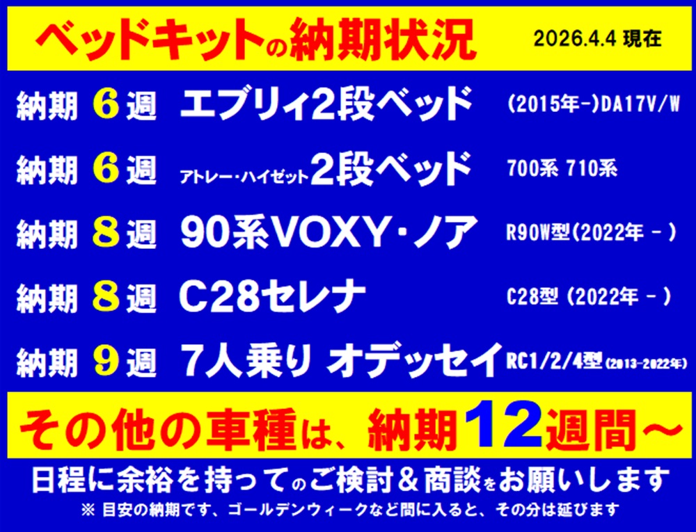そうそう、既にベッドキットを購入されてある方で、今回の新たなオプションを追加で希望される方ございましたら、お気軽にご連絡下さい