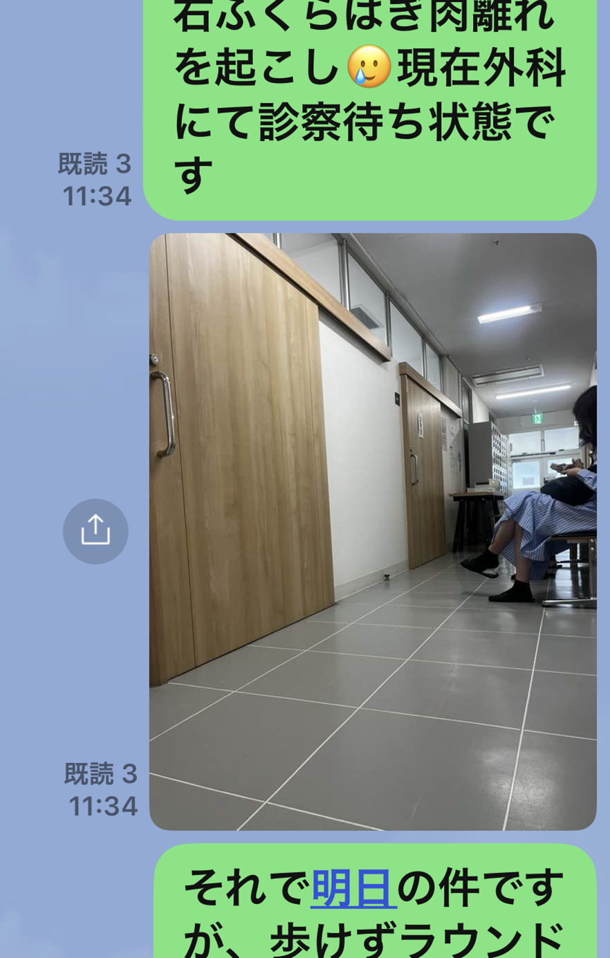 実は火曜日に右足ふくらはぎ肉離れを起こしたんです(>_<)
