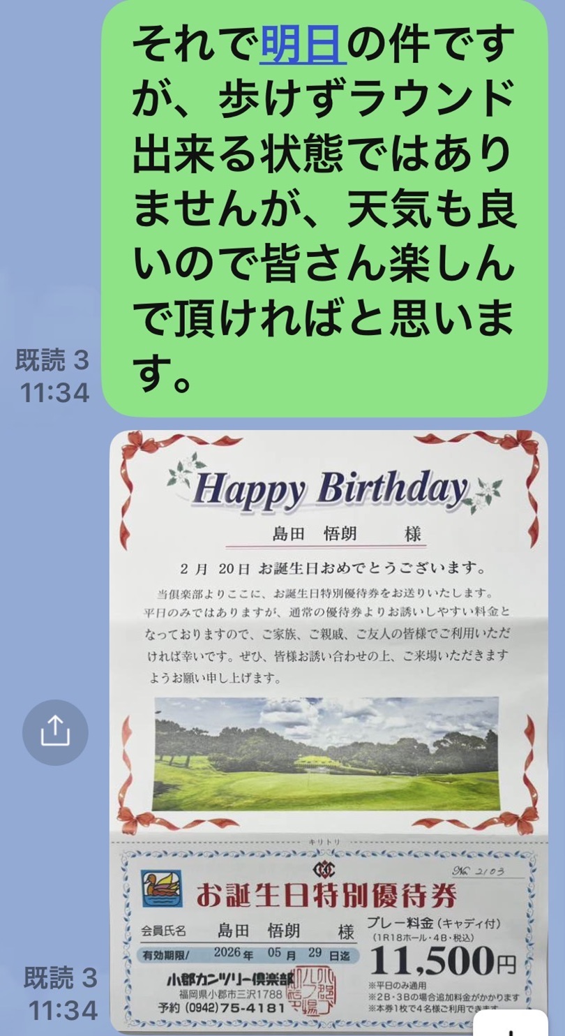 翌日の水曜日、久しぶり高校の同級生達とゴルフする事になってて、みな楽しみにしてたんです