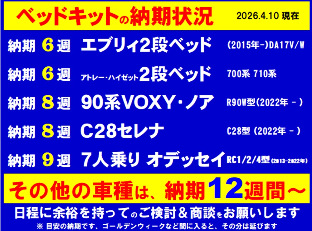 まず、当日群馬に発送するVOXV用ベッドキットの段取り