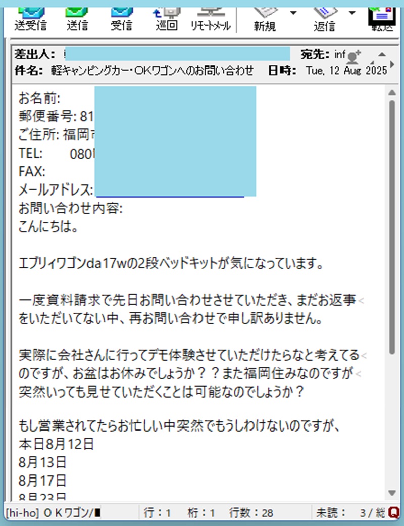昨年の8月初めに福岡A様から問合せを頂きましたが、北海道遠征の出発前日にて、そのまま出発しましたら1週間後に再度お問合せ頂き・・・