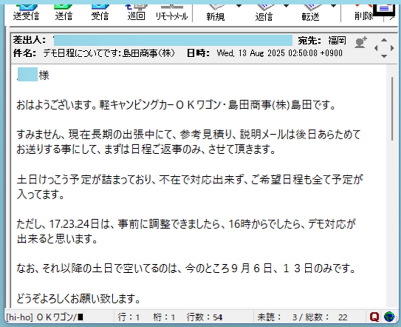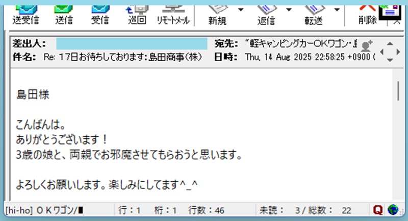 それで、北海道から返信メール