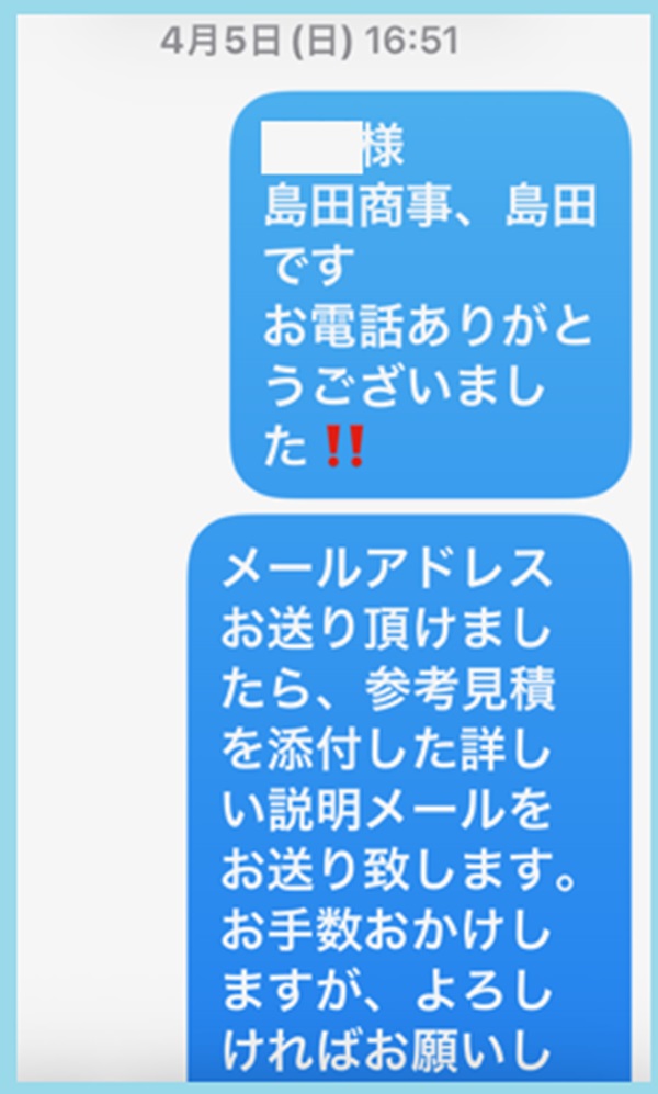 お越し頂く前に、会場で出来なかった詳しい説明と叩き台の参考見積書をお送りしたかったので、メアドをお聞きしてから・・・